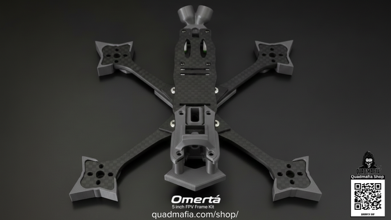 The Omertà was born from one goal, to build a frame tough enough to carry the Quadmafia name. Our team wanted something we could fly hard, crash harder, and still trust to keep flying.